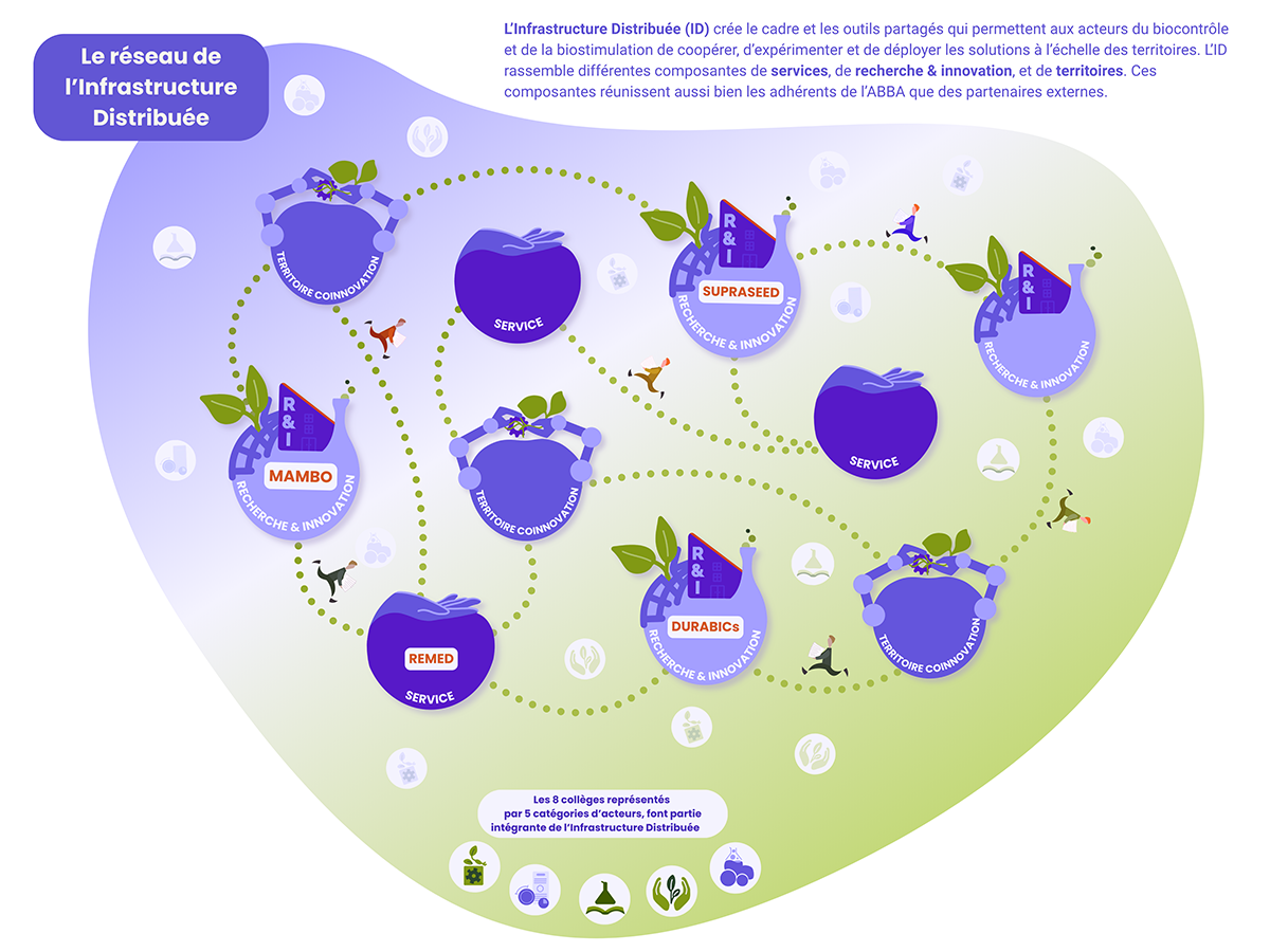 L’Infrastructure nationale du biocontrôle et de la biostimulation est un réseau distribué lui-même composé d’Infrastructures et d’acteurs, dédié au développement, à la structuration et au déploiement des solutions de biocontrôle et de biostimulation en France.